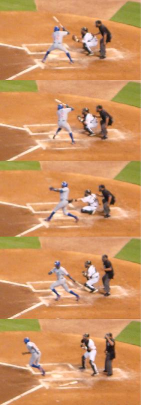 下圖為 Soriano 打擊的連續動作,這一球他擊出全壘打,是 5月7日比賽當天他所擊出的第一支全壘打。